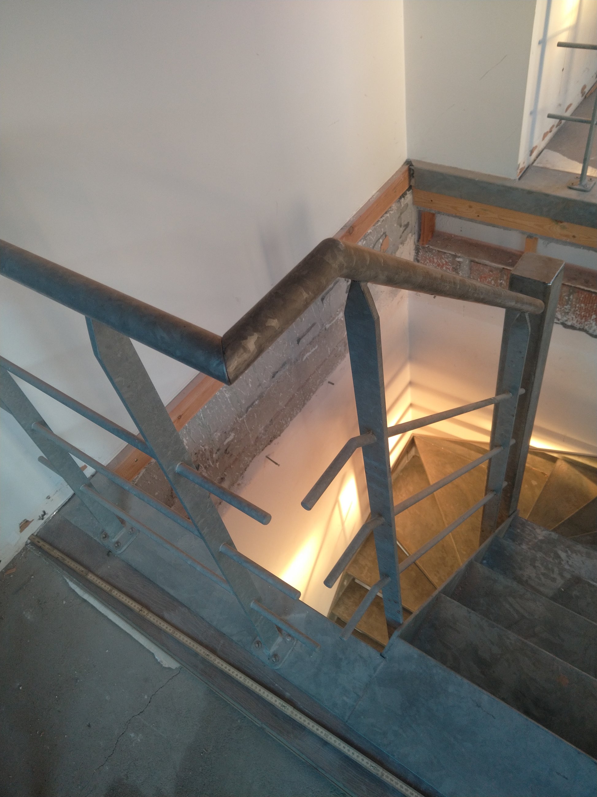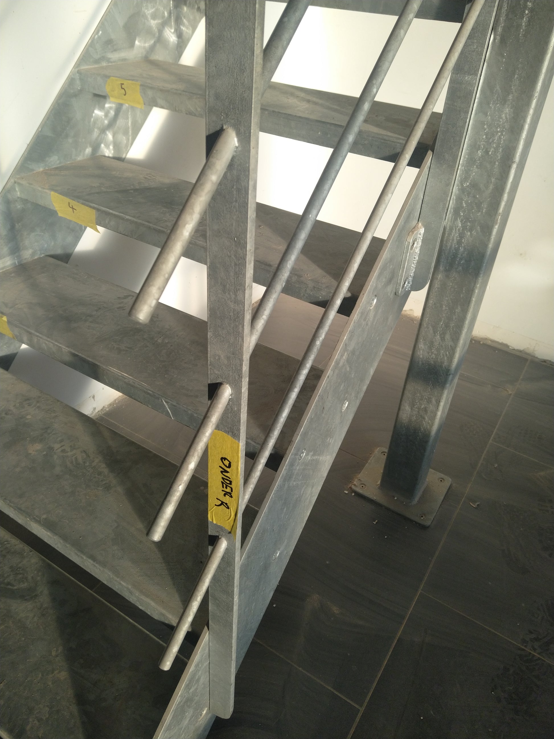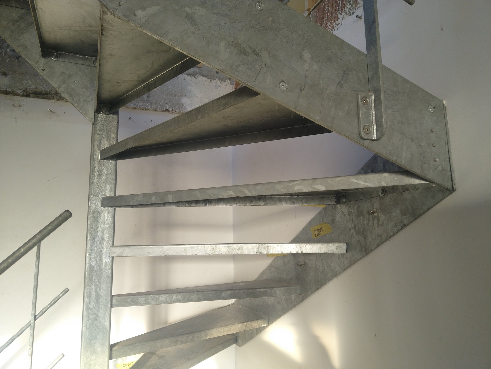 Stalen trap in gegalvaniseerd staal, met liefde gedemonteerd uit een duplex appartement in Brussel.