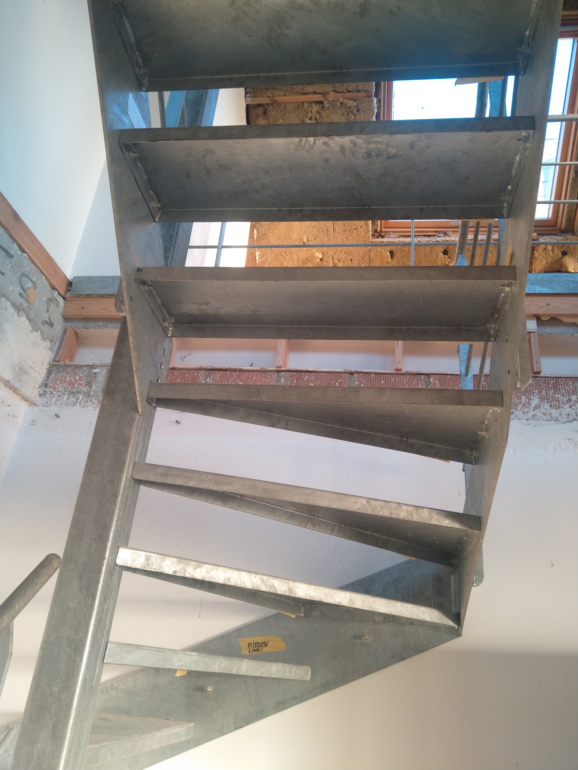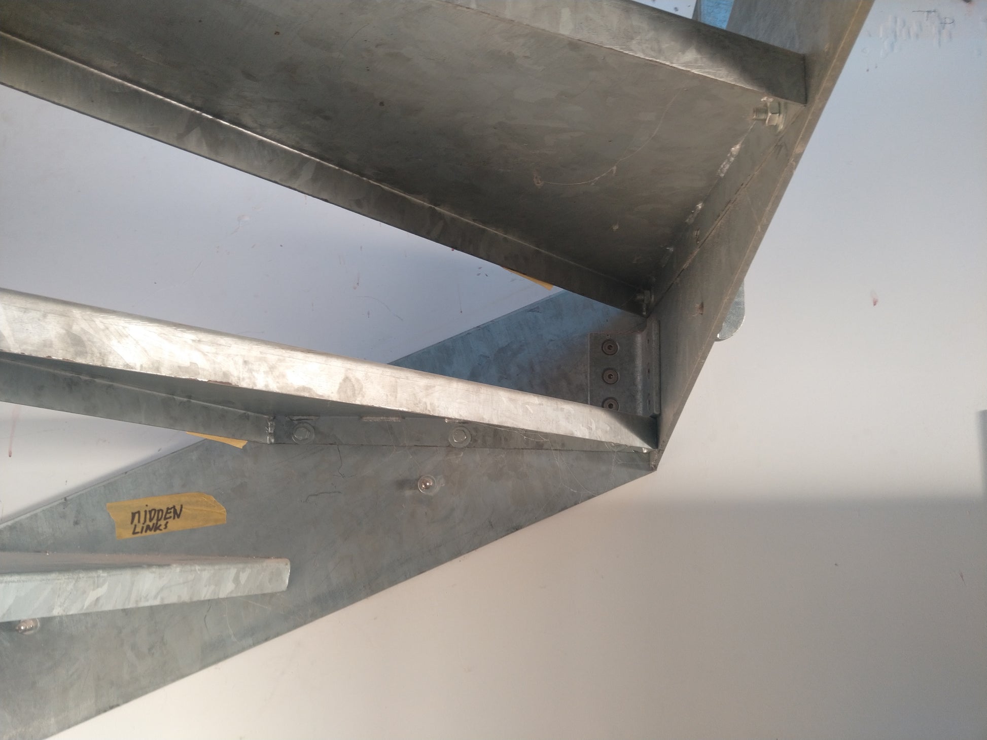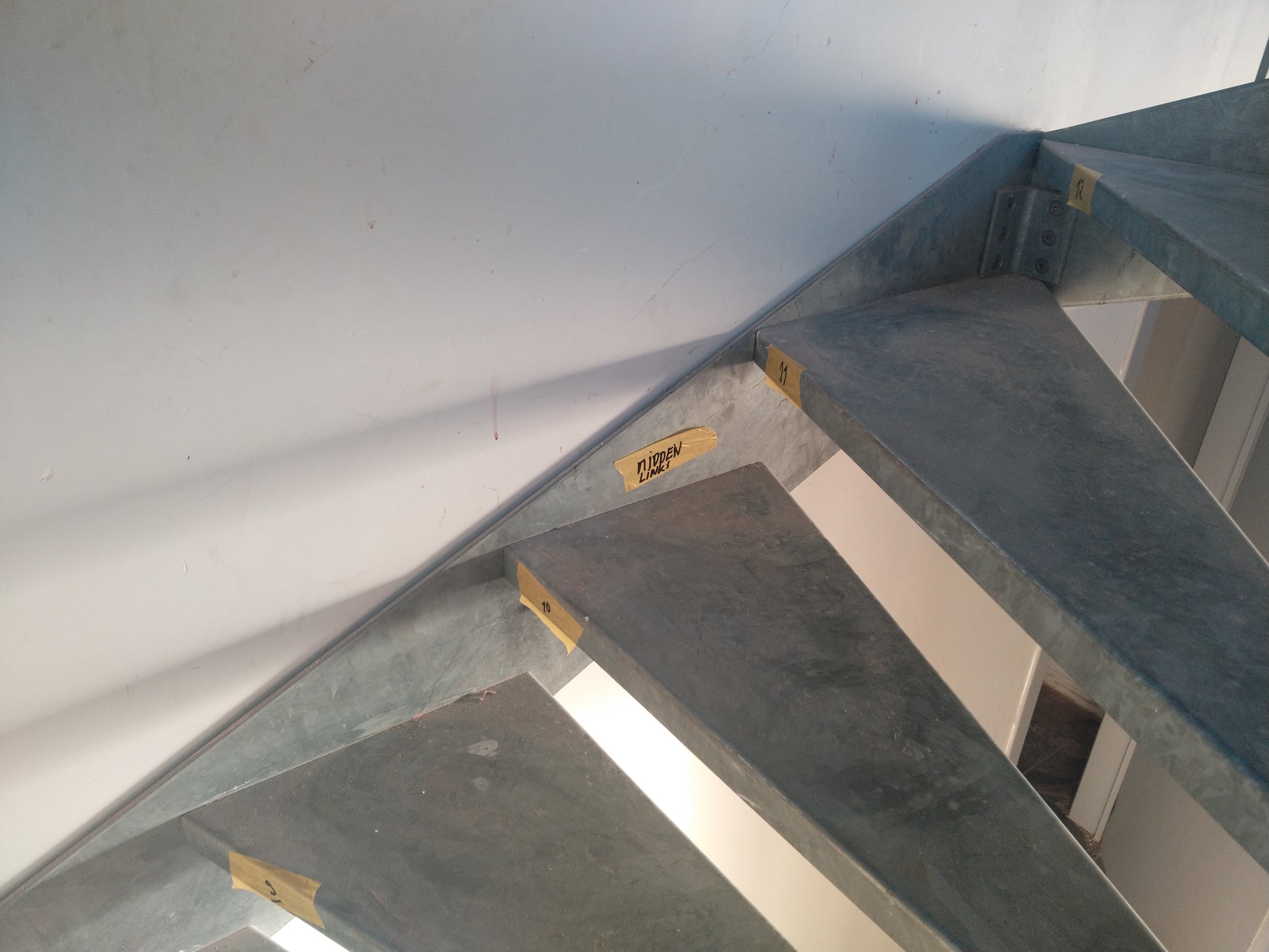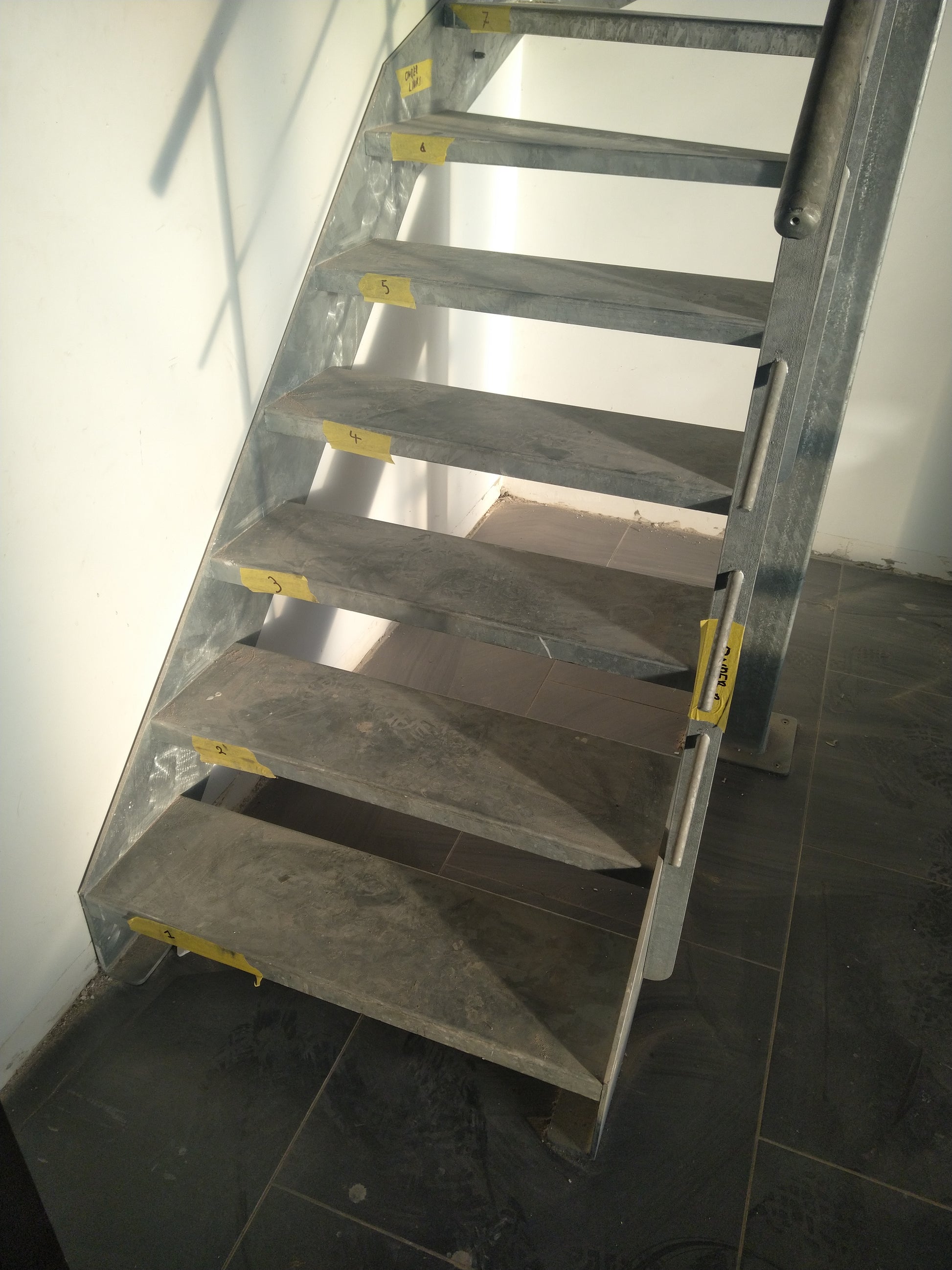 Stalen trap in gegalvaniseerd staal, met liefde gedemonteerd uit een duplex appartement in Brussel.